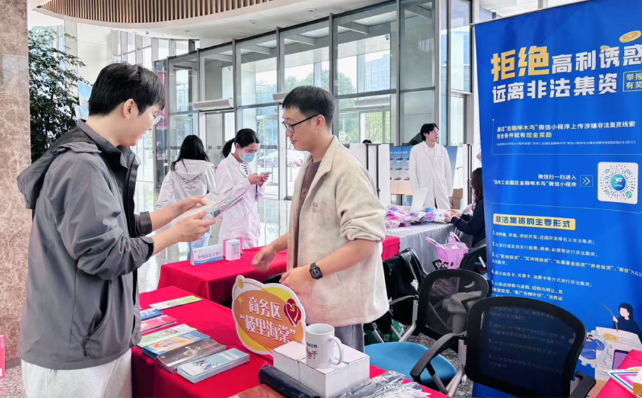 為了滿足樓宇企業員工的金融需求,活動現場還設立了金融咨詢區。多家金融機構的工作人員耐心地為員工們介紹面向個人、家庭及企業的綜合一體化金融服務。