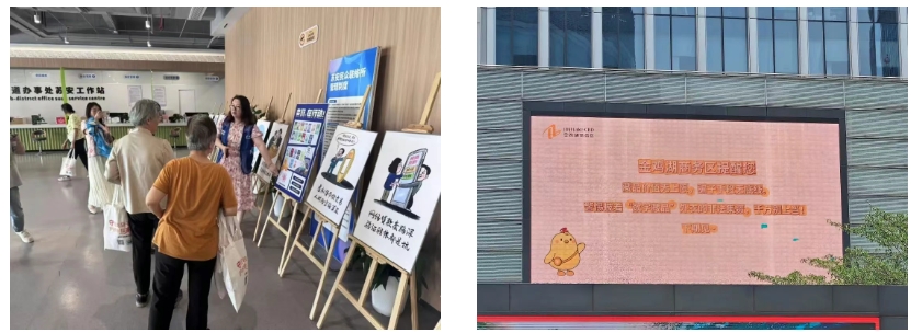 宣傳月期間,商務(wù)區(qū)同步織就線上線下立體傳播網(wǎng)絡(luò),通過媒體平臺持續(xù)推送解析漫畫與典型案例,擴(kuò)大傳播效應(yīng);商務(wù)樓宇電梯、電子屏滾動播放警示標(biāo)語,確保“防非”信息“抬頭可見、駐足可學(xué)”。