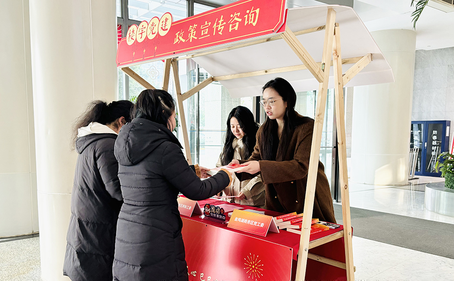 除了精彩的送福和文化交流環節,本次活動還設置了政策宣傳咨詢攤位,設立黨建宣傳展板,展示年度樓宇黨建服務清單等內容。現場,黨務工作者們耐心解答關于黨建工作、黨組織關系轉接、黨員發展等方面的問題,為推動樓宇黨建工作的深入開展提供了有力支持。