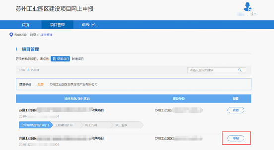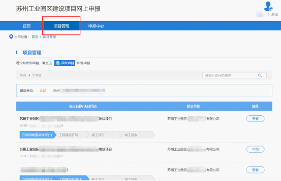 1.2.1. 進入項目管理模塊,與本單位綁定的已經申報過的項目(新拿地、已有地新建等有發改項目代碼的項目)會自動展示在下面