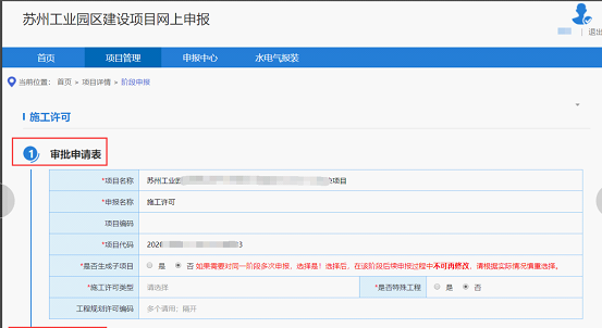 1.3.4. 填寫施工許可階段的申請表完成后提交后臺審核。