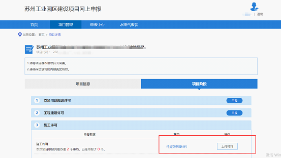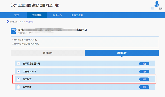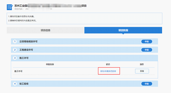 1.3.3. 在階段申報模塊找到“施工許可”階段,點擊“申報”按鈕