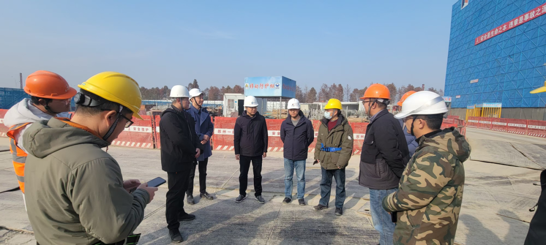 檢查組聽取了桑田科學島信息組團地塊項目建設團隊關于春節期間進行幕墻龍骨施工、能源中心主體結構施工的詳細匯報。