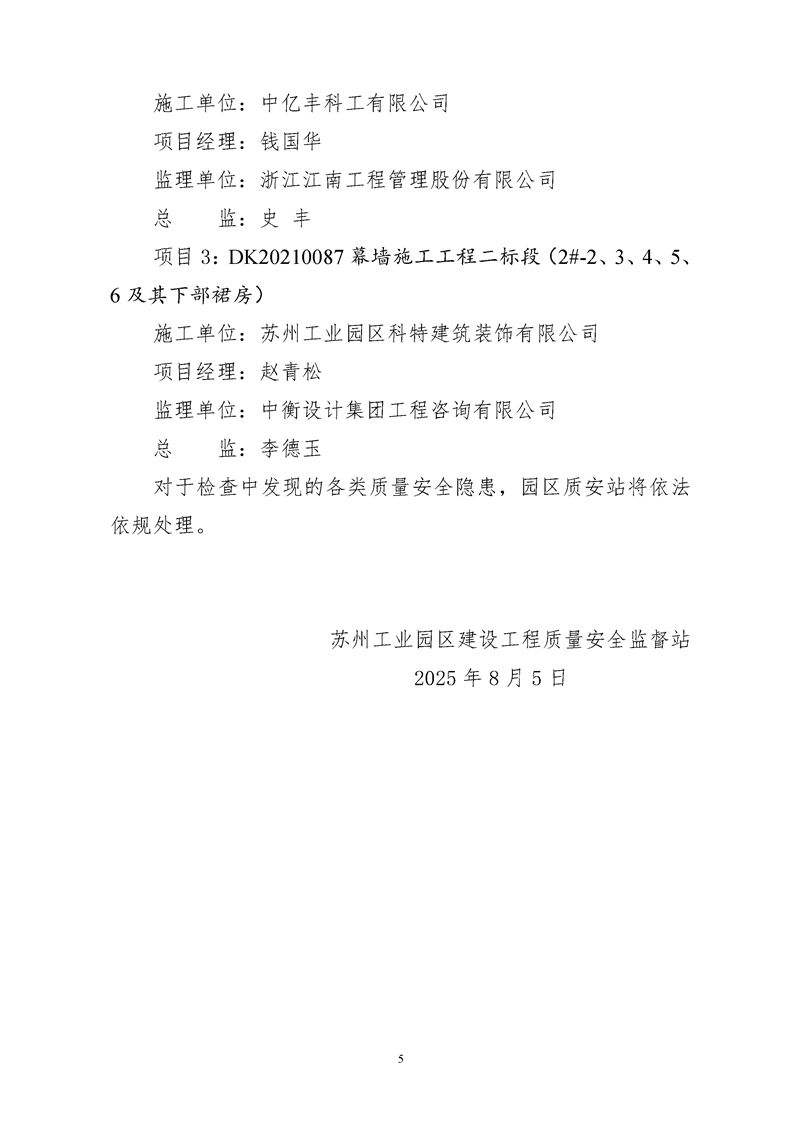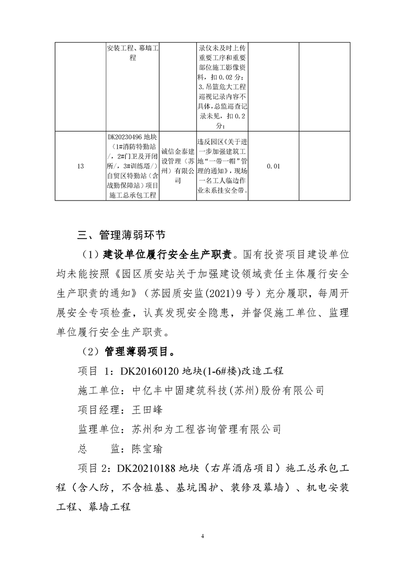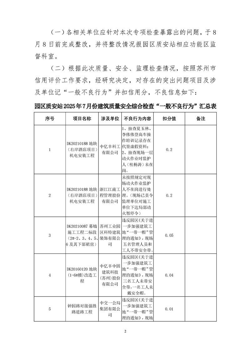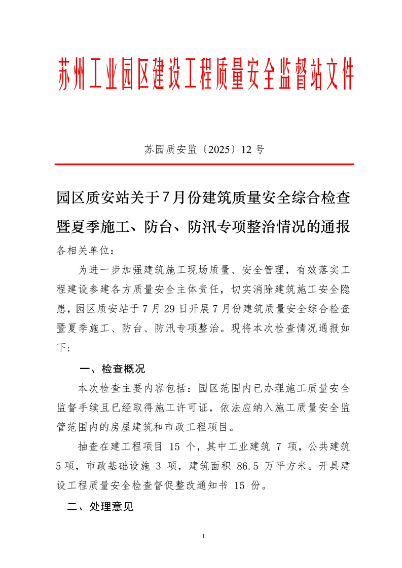 園區(qū)質(zhì)安站關(guān)于7月份建筑質(zhì)量安全綜合檢查暨夏季施工、防臺、防汛專項整治情況的通報