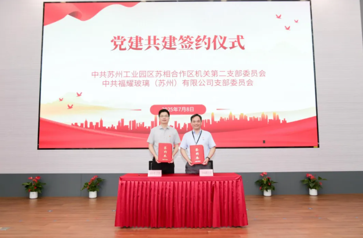 現(xiàn)場,中共蘇州工業(yè)園區(qū)蘇相合作區(qū)機(jī)關(guān)第二支部委員會(huì)與中共福耀玻璃(蘇州)有限公司支部委員會(huì)簽署黨建共建協(xié)議,雙方將以“結(jié)對(duì)共建”為契機(jī),共同探索創(chuàng)新黨建與業(yè)務(wù)融合的新模式、新機(jī)制,以常態(tài)化的聯(lián)建平臺(tái),實(shí)現(xiàn)資源共享,推動(dòng)福耀蘇州綜合發(fā)展實(shí)力再上新臺(tái)階。