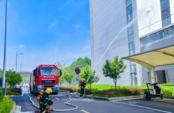 本次演練采取實戰(zhàn)演訓(xùn)方式,重點演練應(yīng)急啟動、應(yīng)急處置以及應(yīng)急終止三個階段的內(nèi)容,全面檢驗各級單位應(yīng)對安全生產(chǎn)事故的協(xié)同聯(lián)動和應(yīng)急救援能力。演練模擬臺風(fēng)極端天氣下多重險情疊加:蘇州圓德經(jīng)濟發(fā)展有限公司3E·數(shù)字智造園因臺風(fēng)破壞工地臨時線路引發(fā)火災(zāi),且有員工在救援中受傷。事故發(fā)生后,企業(yè)安全管理人員迅速啟動應(yīng)急預(yù)案,組織員工有序疏散,并同步向產(chǎn)業(yè)園管理方、合作區(qū)安監(jiān)部門及外部救援力量報告。蘇相合作區(qū)應(yīng)急指揮中心立即啟動應(yīng)急響應(yīng),組織消防、醫(yī)療、應(yīng)急救援等多支力量趕赴現(xiàn)場。各單位緊密配合,有序開展滅火、救援、疏散、交通管制等工作,最終成功控制火勢,救治受傷人員,完成演練任務(wù)。