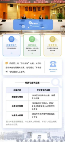 目前,可掌上查閱的民生檔案涵蓋2019至2021年在園區(qū)辦理的婚姻登記檔案,2018年園區(qū)星海醫(yī)院、星湖醫(yī)院、星浦醫(yī)院、星塘醫(yī)院和九龍醫(yī)院的出生醫(yī)學(xué)證明檔案,2005年在原跨塘鎮(zhèn)申領(lǐng)的獨(dú)生子女證。
