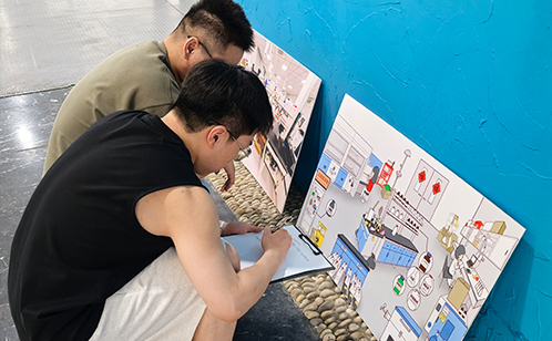 “消防安全模擬演練”環節,各參賽者模擬實驗室發生火災的情形,以消火栓、消防水帶作為道具迅速展開滅火行動;“安全名詞猜猜猜”環節,每隊兩人一組通過肢體語言演繹專業術語,進一步掌握了解實驗室安全知識;“隱患查找大比拼”環節,在特制的實驗室場景圖中,參賽隊伍在規定時間內找出可能存在的隱患,提升應急反應能力。