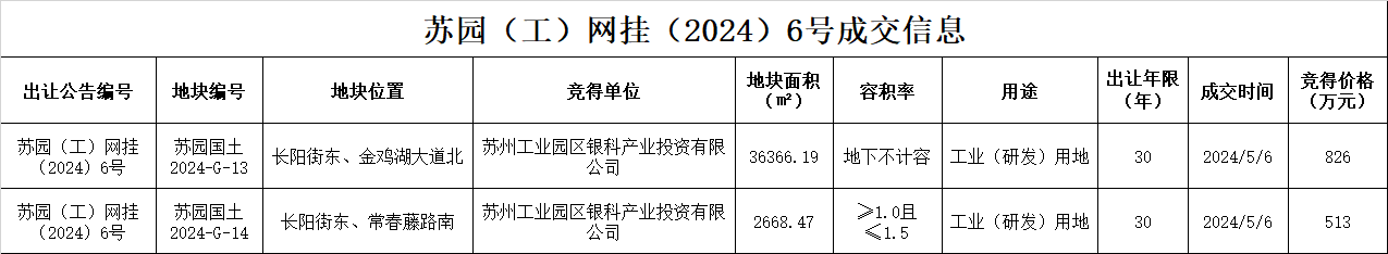 蘇園(工)網(wǎng)掛(2024)6號(hào)成交信息