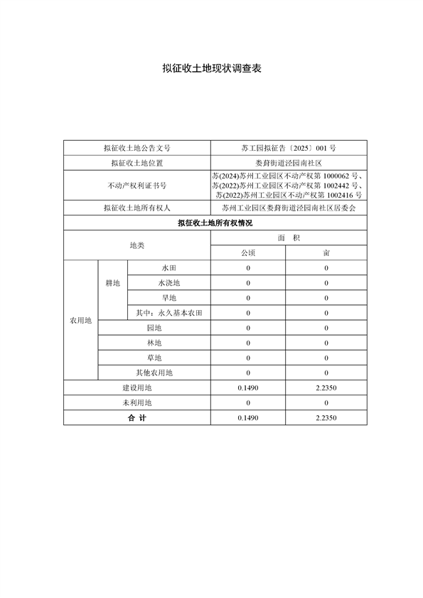 蘇州工業園區2025年度第3批次城市建設用地--蘇州工業園區管理委員會征地補償安置方案公告(蘇工園征補安置〔2025〕002號)