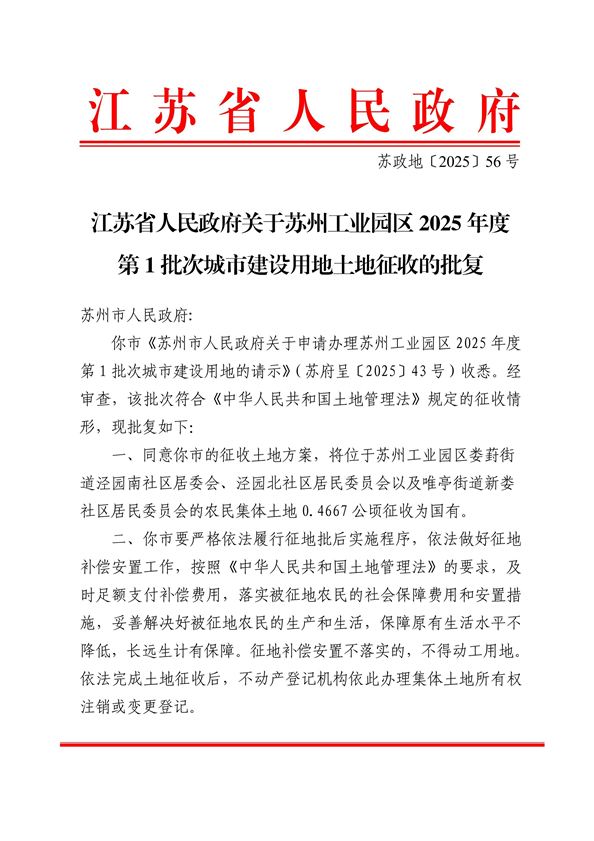 蘇州工業(yè)園區(qū)2025年度第1批次城市建設(shè)用地-批文