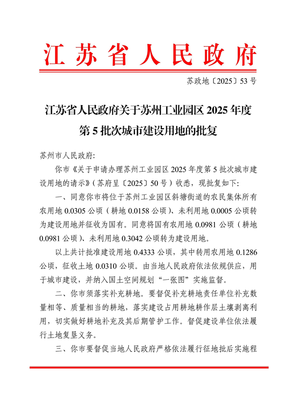 蘇州工業園區2025年度第5批次城市建設用地-批文