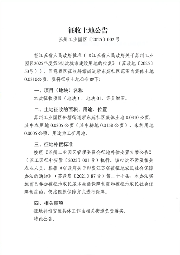 蘇州工業(yè)園區(qū)2025年度第5批次城市建設(shè)用地-征收公告