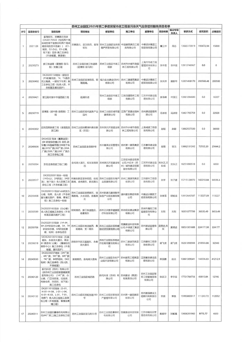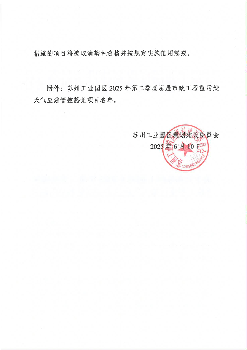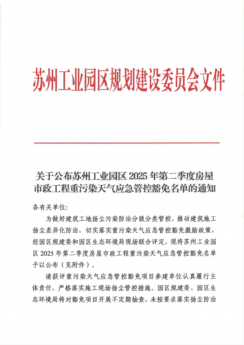 關(guān)于公布蘇州工業(yè)園區(qū)2025年第二季度房屋市政工程重污染天氣應(yīng)急管控豁免項目名單的通知