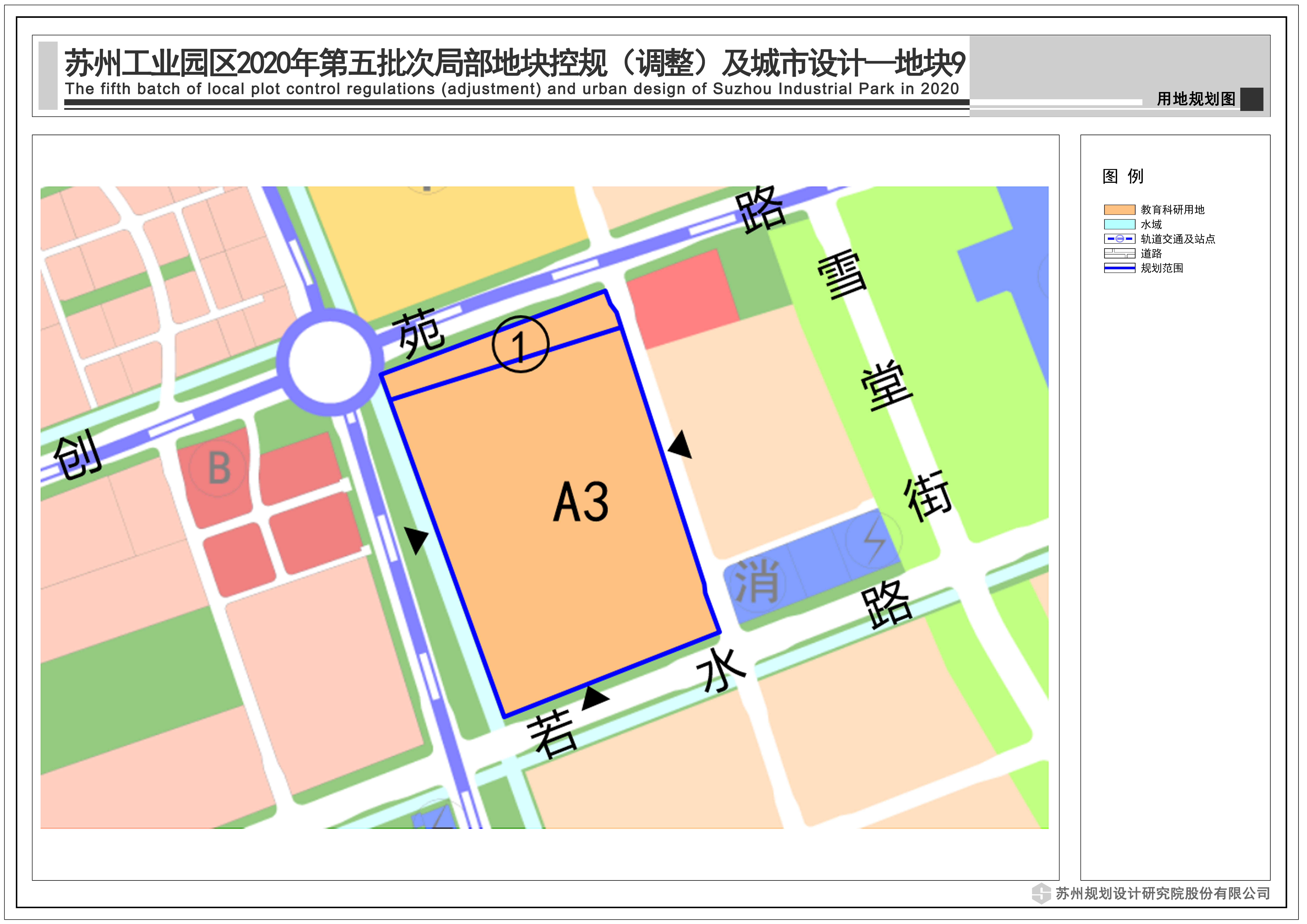 為適應(yīng)園區(qū)教育發(fā)展需求,將地塊①用地性質(zhì)由商業(yè)用地調(diào)整為教育用地,并與南側(cè)現(xiàn)有教育用地合并,明確相關(guān)地塊指標。