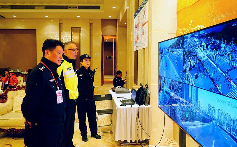園區(qū)公安はさらに各方面を統(tǒng)括し、大會前の安全保障準(zhǔn)備を萬全にし、大會管理措置を著実に実施し、場外の便民サービスを最適化にした。ドローンを使用してコース全域を巡回監(jiān)視し、総合法執(zhí)行、市政管理、消防救助、巡回警備など外部の各方面の力との協(xié)調(diào)を強(qiáng)化し、園區(qū)公安情報指揮センター、現(xiàn)場指揮部と協(xié)力して、現(xiàn)場の人流、秩序、治安などの情報を把握し、大會の安全を力強(qiáng)く保障した。