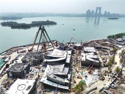 蘇州現代美術館は蘇州工業園區湖東右岸街に位置し、金鶏湖大観覧車に隣り合って接しており、現在インフラ建設を加速しており、ほぼ原形が出來上がり、2024年末までに竣工する予定という。