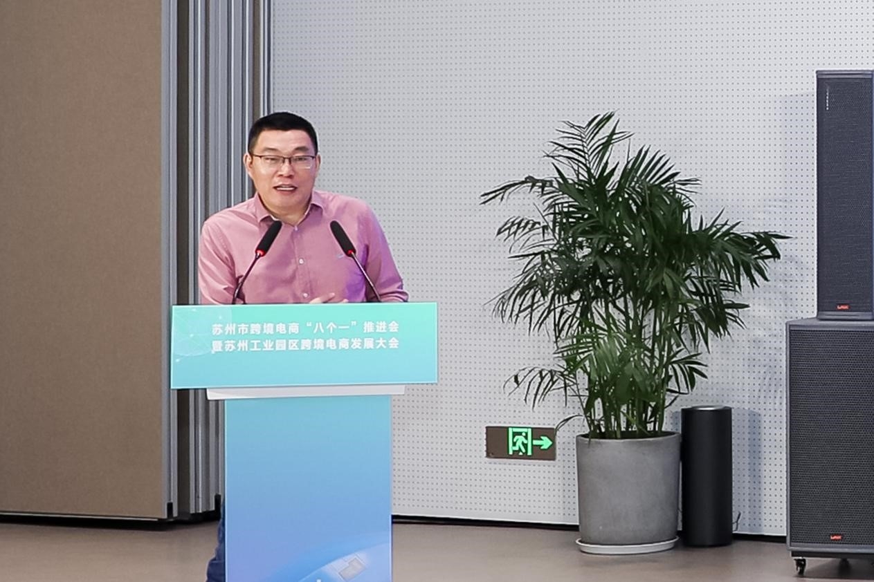 會上,蘇州港航集團董事長陳建斌、園區若態科技董事長郭華根分別作跨境電商代表企業發言。