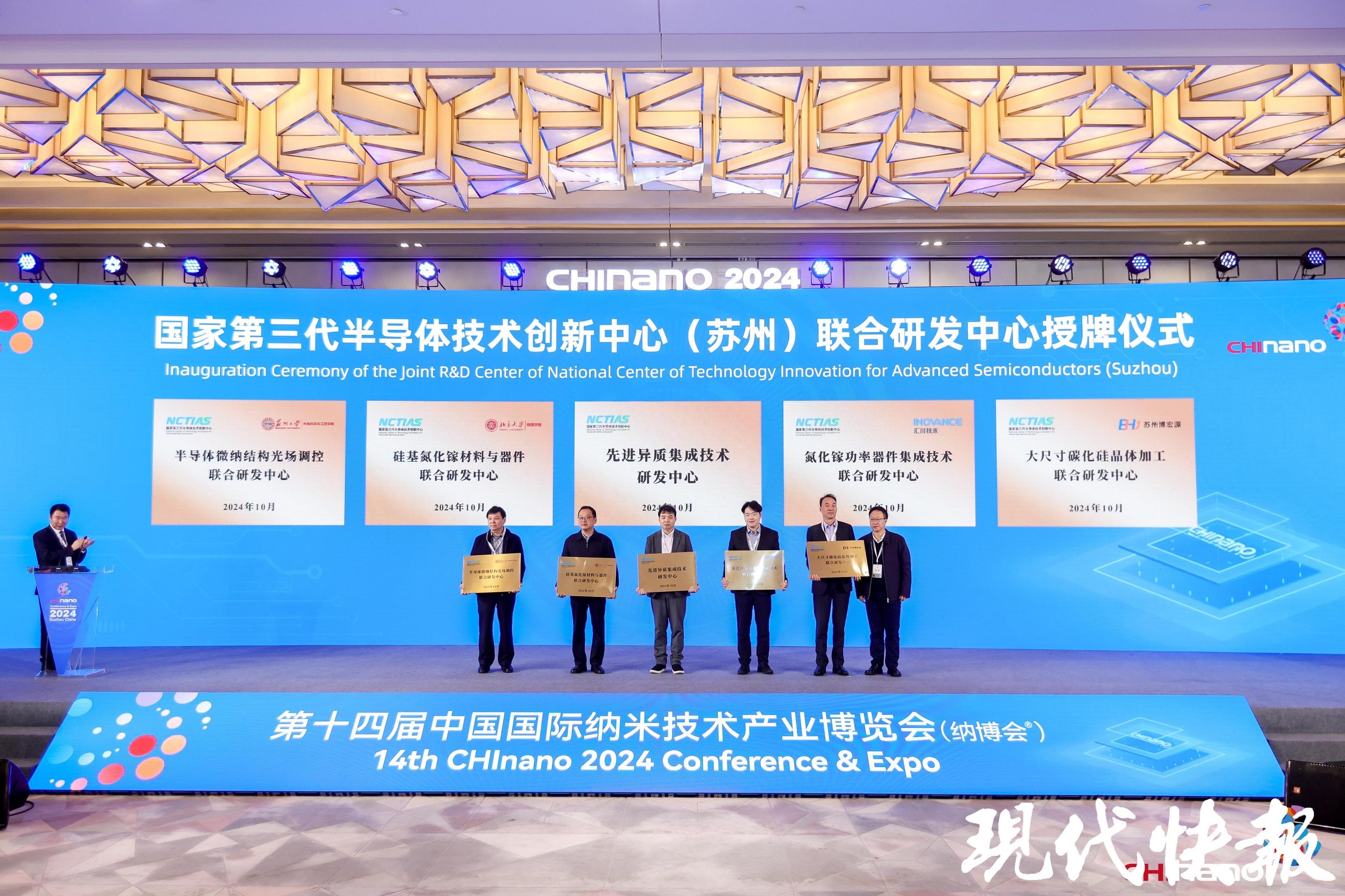 國家第三代半導體技術創新中心(蘇州)自2021年3月落地園區以來,聚焦“1~100”產業共性關鍵技術,已承擔省級以上重大研發項目超20余項,共建近40家聯合研發中心。開幕式現場發布第三代半導體十大科學技術問題和3項最新關鍵突破性成果,并對5至7家聯合研發共建單位進行授牌,進一步推進國創中心(蘇州)與行業內優勢單位構建深度長效產學研合作,加快關鍵核心技術創新和科技成果轉化。