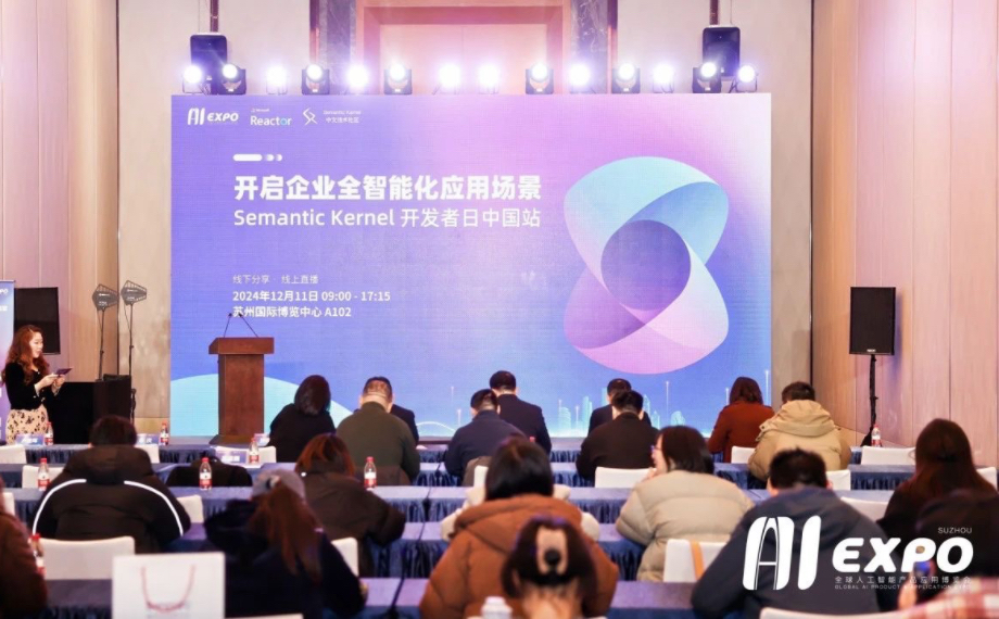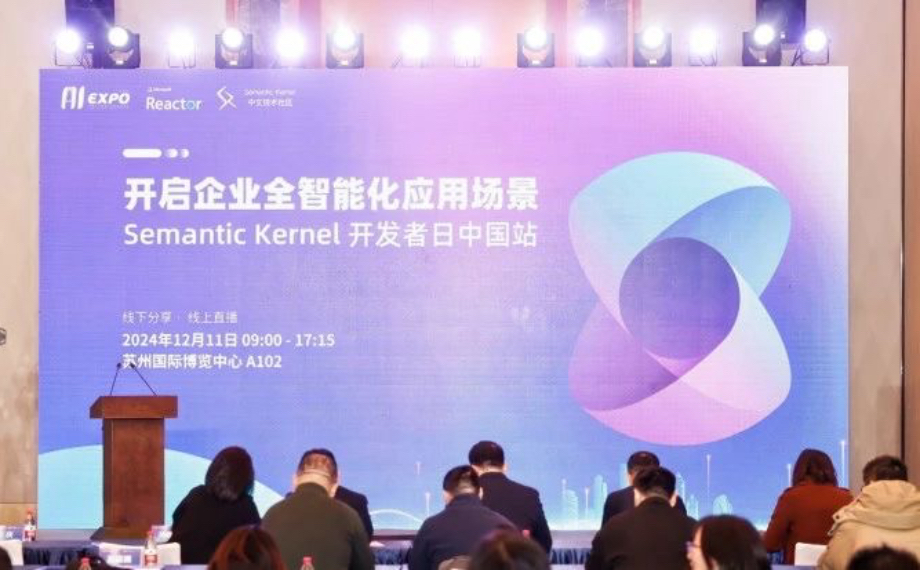 12月11日,2024全球人工智能產(chǎn)品應(yīng)用博覽會(以下簡稱“2024全球智博會”)主題分論壇之一,開啟企業(yè)全智能化應(yīng)用場景——SemanticKernel開發(fā)者日中國站論壇在蘇州國際博覽中心成功舉辦。本次活動是由微軟Reactor、Semantic Kernel中文技術(shù)社區(qū)共同承辦。蘇州工業(yè)園區(qū)(以下簡稱“園區(qū)”)科創(chuàng)委黨組書記、主任潘瑜,SISPARK(蘇州國際科技園)副總裁吳文杰,微軟中國公共事業(yè)部政府及國企行業(yè)總經(jīng)理蔣圣出席論壇。