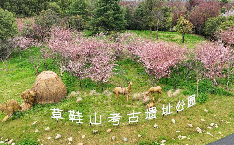 春日尋芳,草鞋山考古遺址公園自然也是不容錯過的打卡點位。灼灼綻放的迎客小毛桃、絢爛如云的垂絲海棠……春的氣息在一場場花事中日漸濃烈。