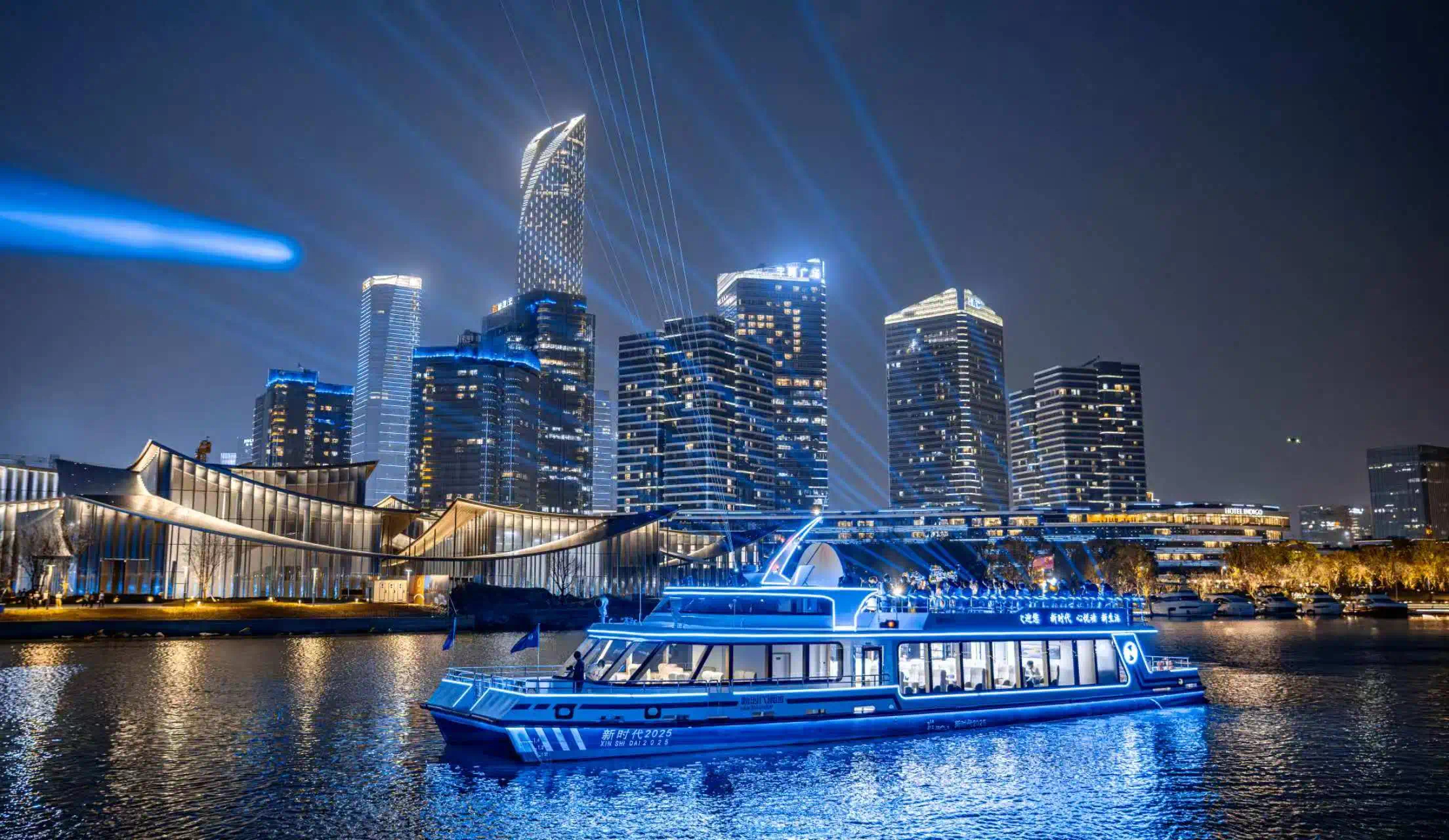 追求文藝范的游客,可搭乘中央河摩登時光漫游航線,開啟一段水岸疊影?CBD徜徉之旅。該船采用太陽能環保親水新能源微游艇,從中央河碼頭出發,途經國金中心、圓融天幕等地標,白天可覽城市活力,夜晚能賞燈光璀璨,一條航線串聯起Young蘇州的現代繁華圖景,還可包船自駕。