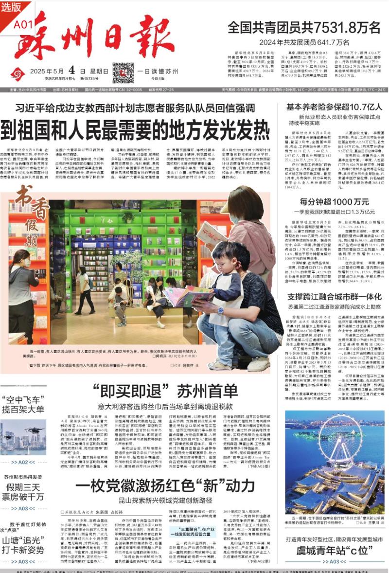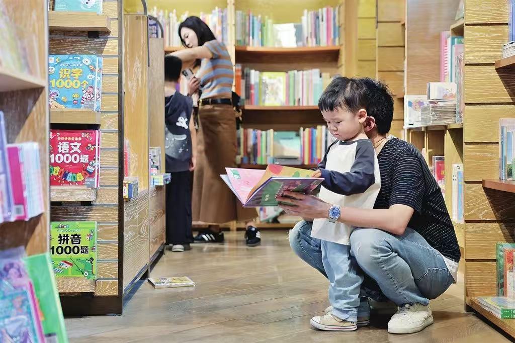 五一假期,有人喜歡游山玩水,有人喜歡音樂美食,有人喜歡與書為伴。昨天,市民在新華書店觀前書城內認真閱讀。 闕明芬攝(視覺蘇州供圖)