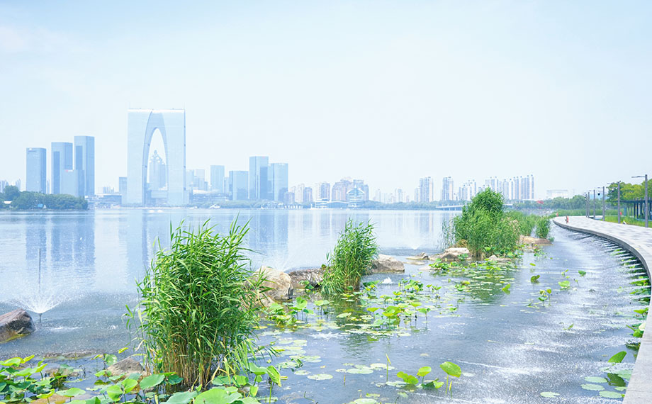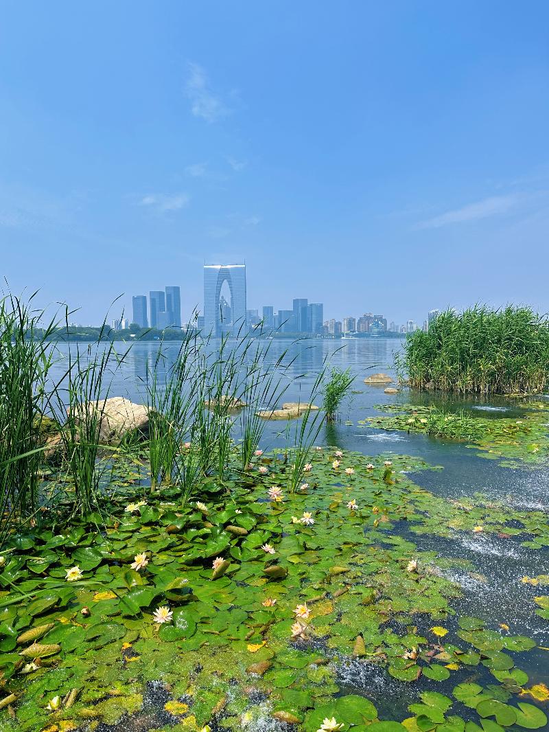 初夏時(shí)節(jié),微風(fēng)輕拂,環(huán)金雞湖步道蘇州文化藝術(shù)中心段,一朵朵睡蓮在晨光中蘇醒,正悠然綻放,將湖面裝點(diǎn)成一幅靈動(dòng)的生態(tài)畫(huà)卷。