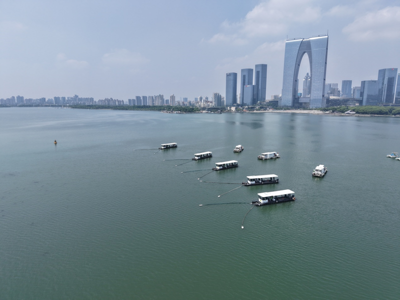 蘇州當前已進入氣象意義的夏天,城市水環(huán)境保障工作迎來年度關鍵考驗。5月底,市政服務集團“2025年度藍藻防控應急演練”在金雞湖、獨墅湖、陽澄湖等重點水域落實開展,以實戰(zhàn)標準檢驗藍藻防控應急處置能力,扎牢水環(huán)境“防護網(wǎng)”。
