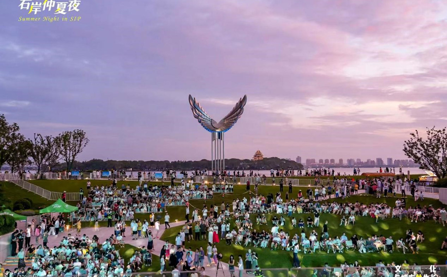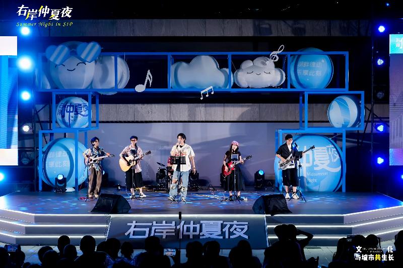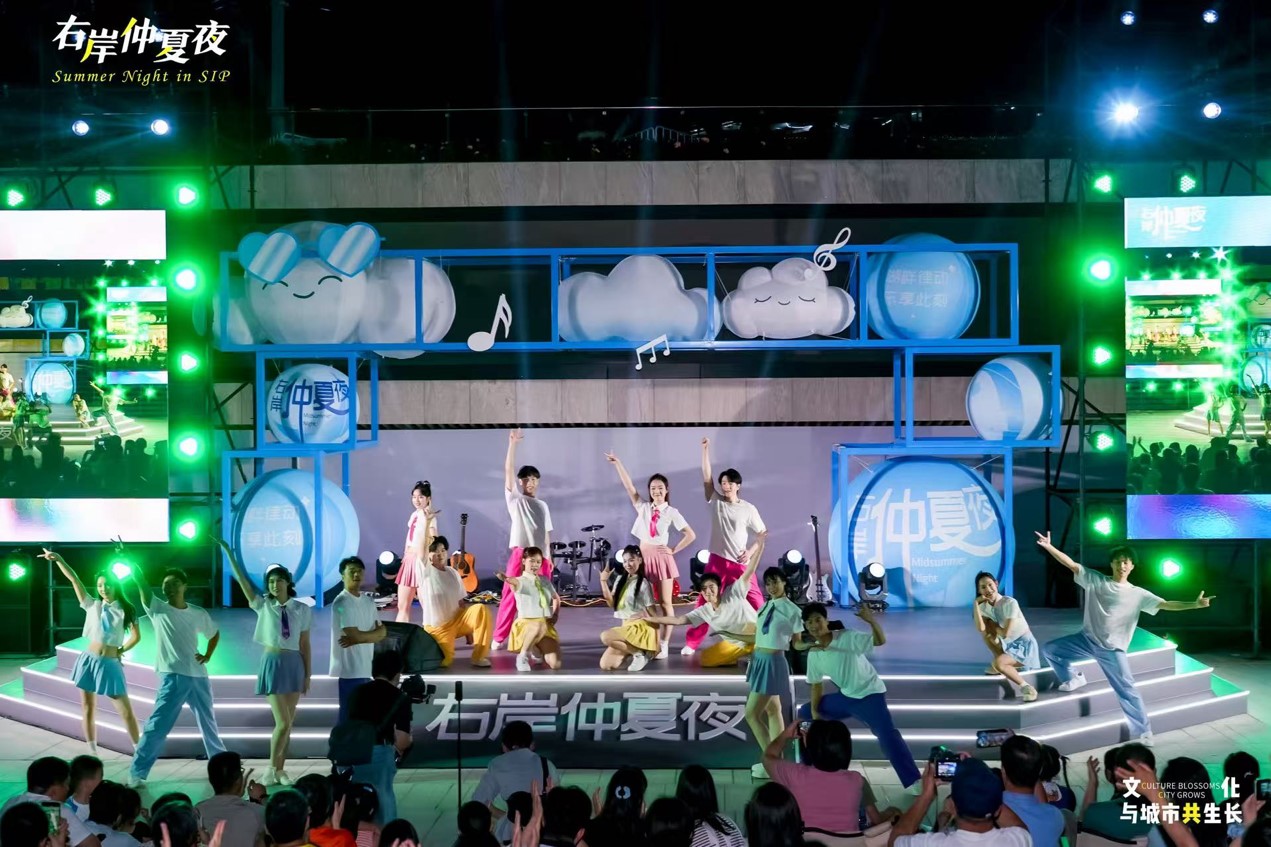“右岸仲夏夜”推出二期,已成長為園區(qū)嶄新的文化IP,不僅為市民奉上豐盛的精神盛宴,更成為展示區(qū)域文旅魅力的閃亮名片。“我?guī)Ш⒆觼磉@邊散步納涼,沒想到碰上這么精彩的演出。”市民趙女士說道,“現(xiàn)在的園區(qū)既有煙火氣,又充滿藝術(shù)范兒,周末遛娃、全家放松再合適不過。”“全民、全齡、全域、全時”的理念,讓藝術(shù)融入湖畔晚風,成為群眾夏夜消暑納涼的好去處。