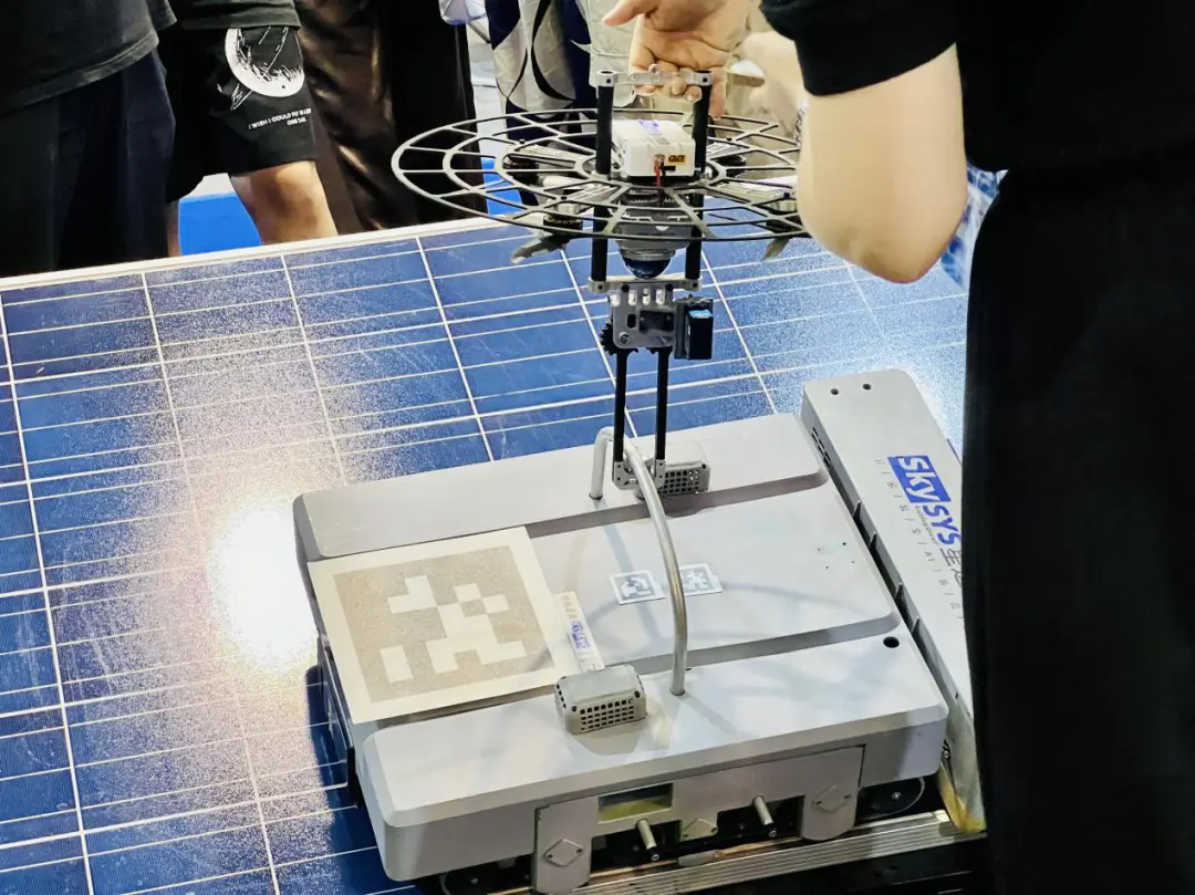 “這是我們最新研發(fā)的光伏面板清潔機(jī)器人,通過‘搭乘’無人機(jī)的方式將其投放到光伏面板上進(jìn)行自動(dòng)清潔,結(jié)束后無人機(jī)還可以復(fù)檢清潔效果。”在星邏智能展臺(tái),公司COO劉宇濤一邊講解,一邊向記者展示清潔機(jī)器人是如何被無人機(jī)抓取,從而實(shí)現(xiàn)“打飛的”作業(yè)。