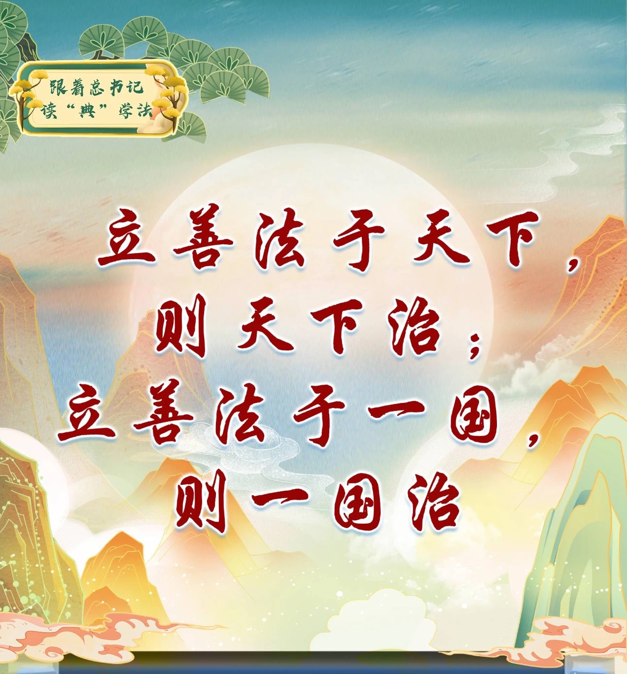 “立善法于天下,則天下治;立善法于一國,則一國治。”推進國家治理體系和治理能力現代化,當然要高度重視法治問題,采取有力措施全面推進依法治國,建 設社會主義法治國家,建設法治中國。在這點上,我們不會動搖。