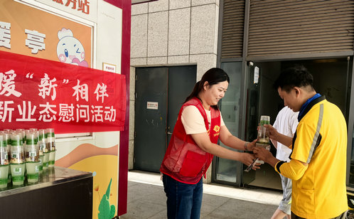 活動現場,社區黨委為快遞員、外賣騎手等新市民勞動者代表發放了“清涼禮包”,并貼心附上手寫防暑小貼士。社區工作人員與他們親切交談,詳細了解他們的工作狀況和面臨的困難。