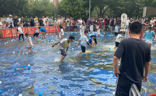 活動(dòng)現(xiàn)場(chǎng)豐富多彩,免費(fèi)發(fā)放爆米花、西瓜、冰棍、綠豆湯、冰粉,趣味撈魚抓魚,觀看星空電影等等。志愿者們提前布置好場(chǎng)地,在現(xiàn)場(chǎng)一陣陣爆米花的香氣中,小朋友們有的相互分享零食,有的歡快地?fù)启~,在海洋球中打鬧、嬉戲……燃爆夏日的活動(dòng)現(xiàn)場(chǎng)熱鬧非凡,到處都是孩子們嬉笑快樂的身影,重燃了大孩子和小孩子的童心、童真和童趣。