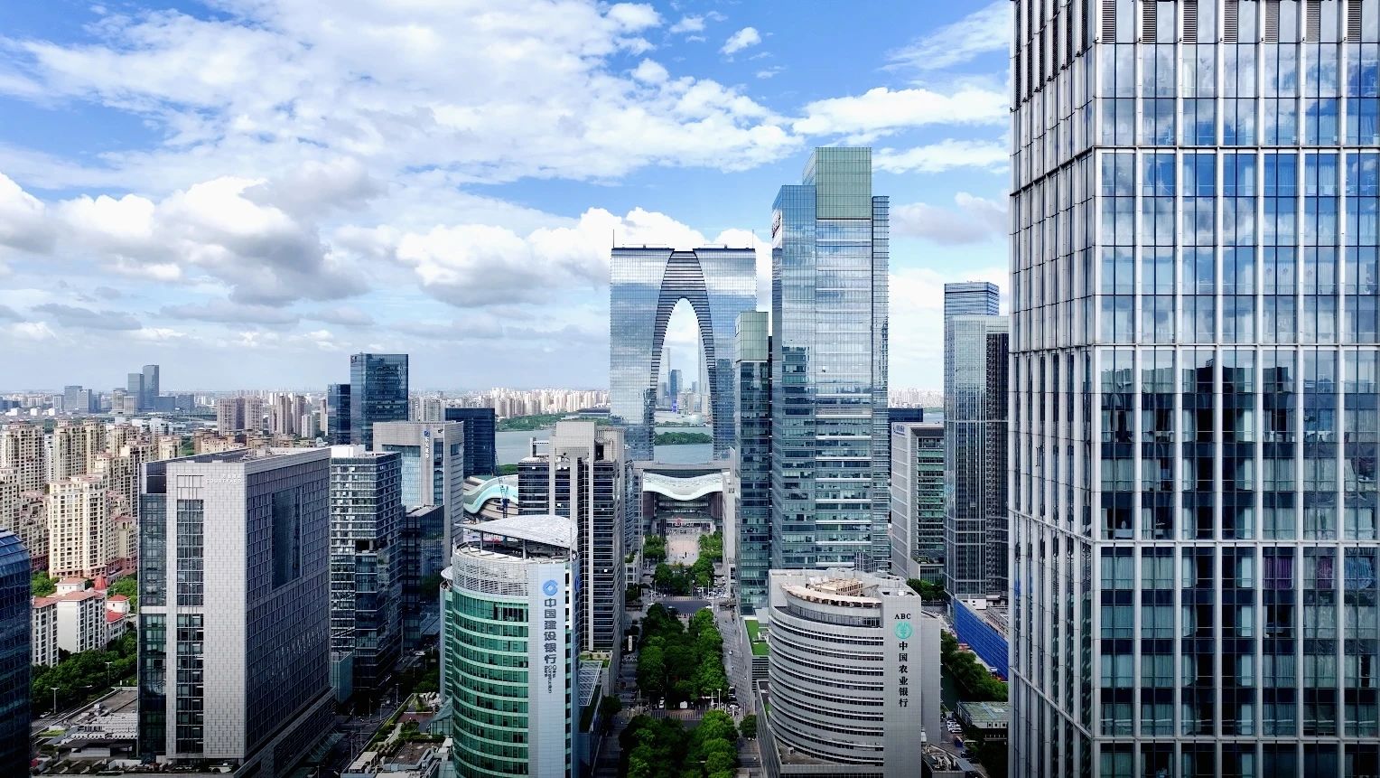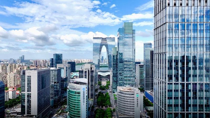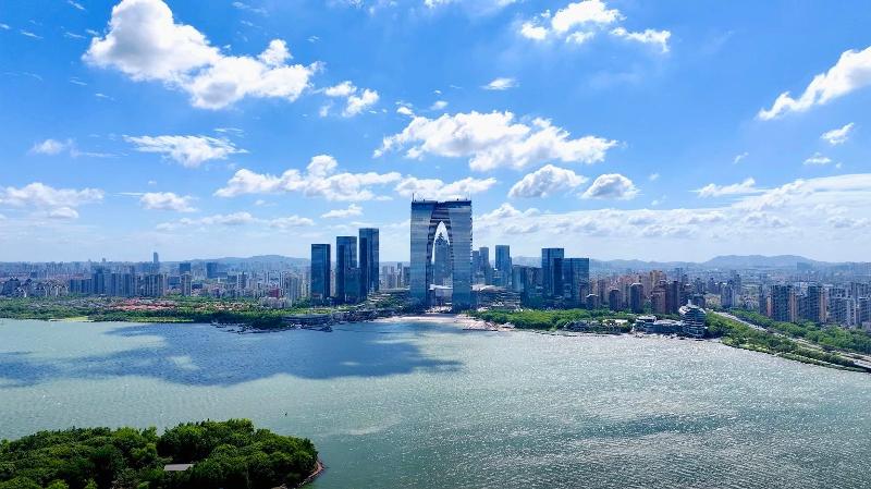 “蘇州之眼”摩天輪等地標建筑引得游人駐足流連,摩天大樓的玻璃幕墻化作天空之鏡倒映著藍天白云,錯落有致的現代建筑與自然風光和諧相融。這片“澄凈藍”,不僅是大自然饋贈的視覺盛宴,更是園區生態與發展相得益彰的生動寫照。