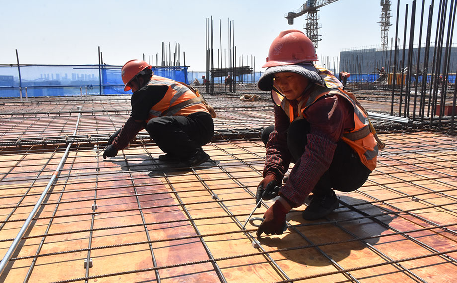 上午九點,在生物醫藥國家技術創新中心研發樓7層的作業面上,鋼筋工張彩麗動作嫻熟,一手勾住鋼筋,一手快速穿絲、綁扎、擰緊,汗水浸透了工裝。不遠處,負責預埋安裝的徐生兵正一絲不茍地進行著“排兵布陣”。“這些都是大項目,工程質量必須保證。我在園區各項目工作了近四年,看著經手的一個個項目建成、投用,即便辛苦,我也充滿自豪!”徐生兵說道。