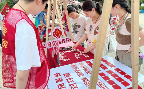 為弘揚勤儉節約的優良傳統,踐行社會主義核心價值觀,倡導健康文明的婚俗新風尚,近日,文薈苑社區新時代文明實踐站圍繞“倡導文明婚俗、弘揚文明新風”主題,組織開展了一場富有實效的宣傳活動。活動以弘揚勤儉節約傳統、踐行社會主義核心價值觀為主線,通過志愿者現場發放倡議書、面對面呼吁等方式,引導居民自覺“抵制高額彩禮、拒絕鋪張浪費、回歸婚姻本真”。同時,現場開展“移風易俗對對碰”互動環節吸引不少居民主動參與這種寓教于樂的形式不僅強化居民對文明婚俗內容的認知與記憶不斷浸潤家庭文明素養,助力繪就文明和諧的社區畫卷。