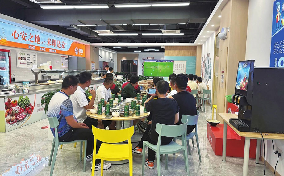在店長朱奕陽和小哥們的“朋友圈”里,各種輕松互動每天都在進(jìn)行。朱奕陽打造的“薈食福利群”里,小哥們每天都在分享菜品心得:“今天的紅燒肉燉得夠爛”“夏天能不能多做點(diǎn)涼拌菜”“上周團(tuán)購的小龍蝦什么時(shí)候再有”……而食堂也總能快速響應(yīng):時(shí)令菜品團(tuán)購、特色小吃上新、節(jié)日聚餐安排,甚至連這次的觀賽活動,也是群里一句“最近有球賽,一起來看”的邀請促成的。