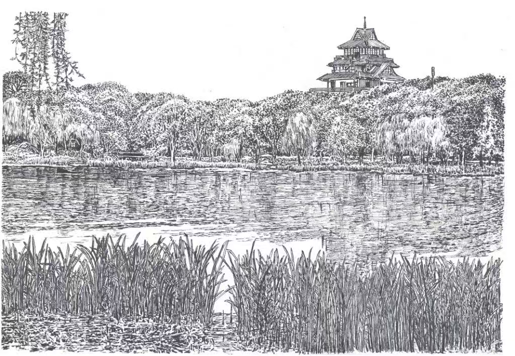 蘇州工業(yè)園區(qū)開發(fā)建設(shè)初期,金雞湖清淤,挖出的土在湖中堆了兩個(gè)島。湖北部的島較小,叫玲瓏島,樹密草豐,游人不能上去,在岸上遠(yuǎn)看像清波中漂著一粒綠翡翠。南島面積大點(diǎn),約150畝,平面看像個(gè)斜“n”,岸線曲曲折折的,種了護(hù)岸蘆葦。島上有塊大太湖石,請(qǐng)金庸先生題了“桃花島”三字。島上植被很好,一半樹是各種桃樹,春天時(shí)桃紅柳綠,明艷照人;其他有水杉、銀杏、枇杷、楊梅、梨樹、石榴等。主建筑叫紫氤閣,高40米,色彩淡雅,是兼有傳統(tǒng)與現(xiàn)代之美的木與鋼相結(jié)合的樓閣。島灣里種有荷花,夏日荷開,湖風(fēng)輕搖,嬌美動(dòng)人。