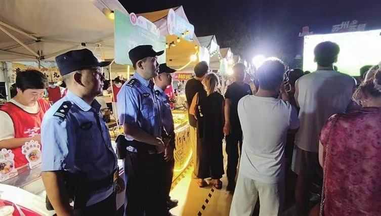 為了讓更多人感受到足球的樂趣,園區推出多個“足球夜市”點位。為確保“蘇超”戶外觀賽點安全有序,湖東派出所針對“蘇超夜市”觀賽區,構建“空地聯動+精準宣防”立體化勤務模式,讓盛夏“足”夠精彩。