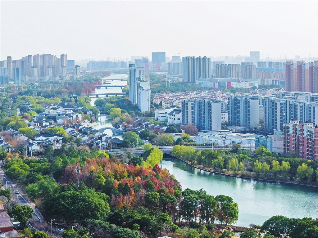昨天,遠眺園區“十里斜塘”,碧水藍天、斑斕杉林與蜿蜒的河道,共同勾勒出一幅獨具水鄉神韻的生態畫卷。