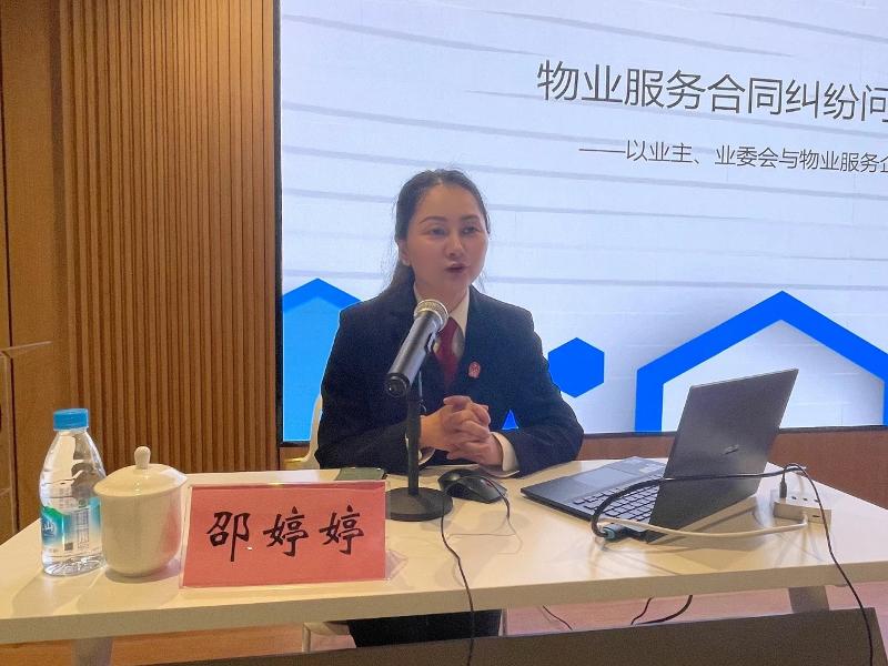 園區(qū)法院?jiǎn)T額法官邵婷婷一直從事物業(yè)、勞動(dòng)爭(zhēng)議審判工作,她將法律理論與實(shí)戰(zhàn)案例深度融合,依次闡述了物業(yè)糾紛的主要類(lèi)型、多種成因、化解難點(diǎn),深入淺出講述物業(yè)服務(wù)合同糾紛的法律依據(jù)、處理要點(diǎn),依托具體案例現(xiàn)場(chǎng)模擬業(yè)主、業(yè)委會(huì)、物業(yè)三方對(duì)話,“沉浸式”教學(xué)給在場(chǎng)學(xué)員們打開(kāi)了調(diào)解新思路。