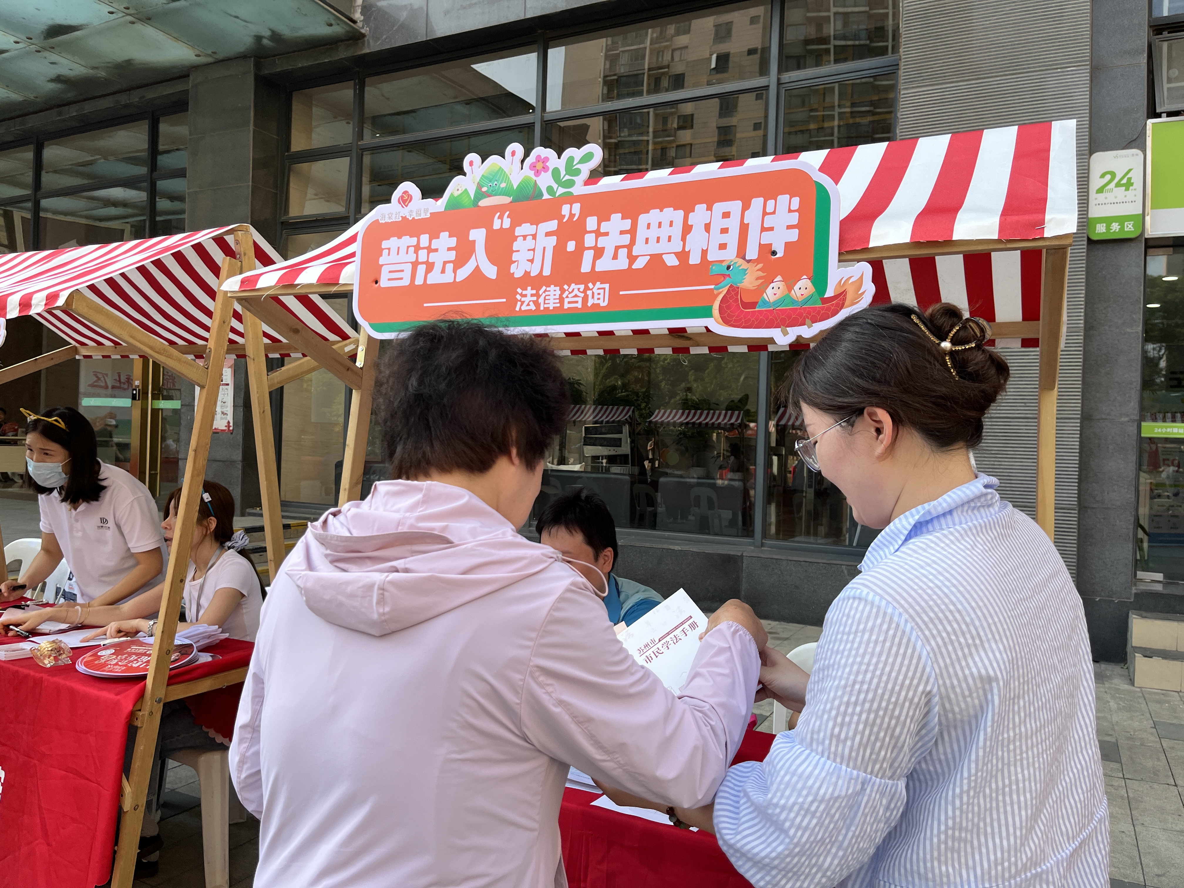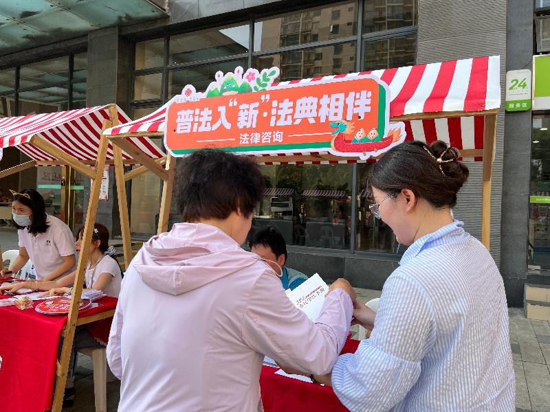 結(jié)合傳統(tǒng)節(jié)日,將法治宣傳與民俗文化等相融合開展特色主題活動,以群眾喜聞樂見的形式傳播民法典知識。園區(qū)司法局結(jié)合“砥礪奮進(jìn)新征程——走法治之路,悟法治力量,建法治蘇州”主題實(shí)踐活動,圍繞園區(qū)4條公民法治素養(yǎng)提升實(shí)踐路線11個法治文化陣地制作H5項(xiàng)目,開展“‘典’開地圖云游法治園區(qū)”線上答題挑戰(zhàn)賽;聯(lián)合園區(qū)教育局,在2所學(xué)校開展“法治非遺課堂”,寓教于樂,提升青少年法治素養(yǎng)。園區(qū)社會事業(yè)局邀請省優(yōu)秀婚姻家庭輔導(dǎo)員在結(jié)婚登記點(diǎn)與新人交流分享婚姻家庭相關(guān)法律知識,倡導(dǎo)文明婚俗,引導(dǎo)群眾構(gòu)建和諧家庭關(guān)系。園區(qū)法院結(jié)合節(jié)氣熱點(diǎn)制作“民法典宣傳月|麥穗未盈時,法潤民生處”互動普法圖文,以物業(yè)權(quán)益、鄰里糾紛等民生“小切口”詮釋法律“大道理”;打造“園法護(hù)原創(chuàng)”品牌并發(fā)布系列普法短視頻,運(yùn)用AI動畫技術(shù)生動解讀民法典條款,推動法律條文從“靜態(tài)文本”向“動態(tài)場景”轉(zhuǎn)化。婁葑街道以端午節(jié)為契機(jī),開展主題市集游園會,設(shè)置游戲互動、文創(chuàng)手作、普法宣傳、健康義診等特色區(qū)域,將民俗文化與法治宣傳、便民服務(wù)巧妙融合,推動法治精神融入居民生活。