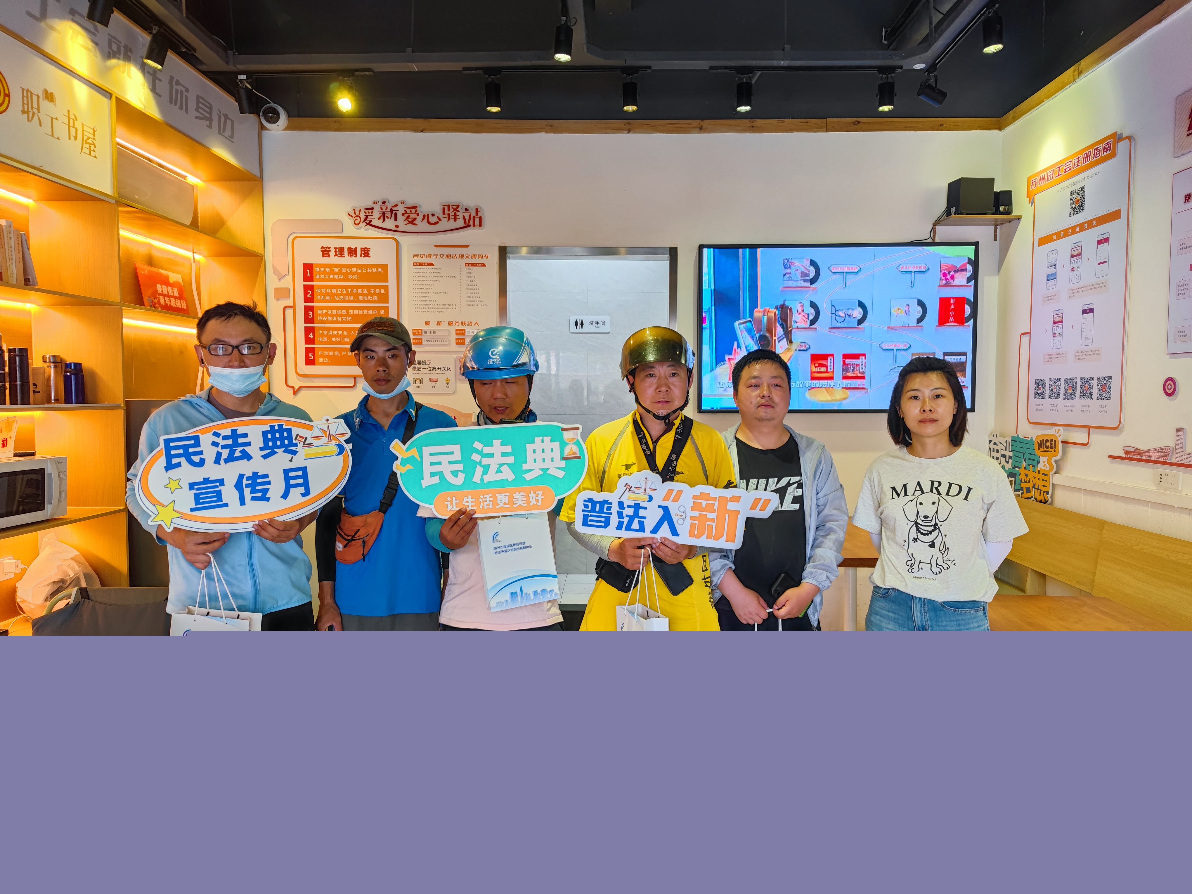 2.開展普法入“新”服務(wù)活動。園區(qū)檢察院與勝浦街道建立普法小分隊(duì),前往社區(qū)外賣員休息區(qū)以調(diào)查問卷形式了解騎手法治需求,通過“普法宣講+風(fēng)險排查+制度完善”三維模式為新業(yè)態(tài)勞動者密織法律保護(hù)網(wǎng);婁葑街道司法所走進(jìn)文萃路社區(qū)暖“新”驛站,為新業(yè)態(tài)新就業(yè)群體送上定制“暖‘新’法治禮包”,內(nèi)含《外賣行業(yè)法律風(fēng)險防范手冊》、民法典宣傳手冊、法律援助聯(lián)系卡及法治文創(chuàng)作品,給予新業(yè)態(tài)從業(yè)者更多法治關(guān)懷。