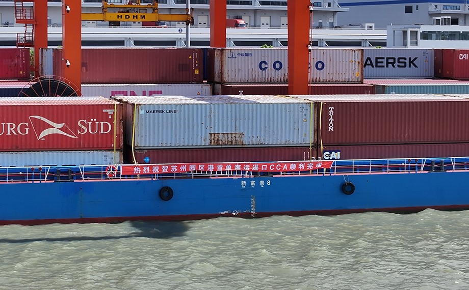 Recently, a barge carrying containers containing automobile rear axles imported from Germany glided into the terminal at SIP Port, marking the success of the port’s first CCA (connected carrier agreement)-based transportation of imported goods.