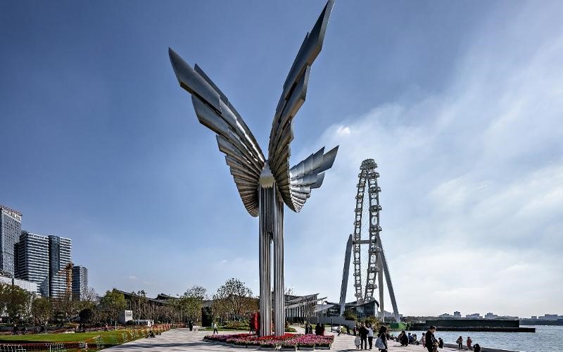 The first route links the North Tourist Center of Jinji Lake Scenic Area (Jinji Station 10), Suzhou Culture and Arts Centre, the sculpture called “In the Play (Ru Xi)”, Moon Harbor, Jinji Station 09, Harmony Screen, the sculpture called “Flying”, and SUZHOUEYE Ferris wheel.