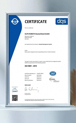 近日,繼拿下中國“ISO9001質量三體系認證”后,蘇州工業園區企業——艾利特機器人再傳捷報,ELITEROBOTS德國有限公司正式通過德國本土ISO9001質量管理體系認證,成為國產協作機器人領域首家通過德國本土認證的中國企業!這張分量十足的“黃金通行證”,為艾利特叩開歐盟高端市場大門奠定了堅實基礎。