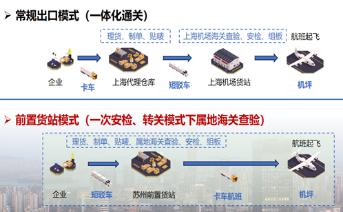 在原有模式下,蘇州企業的貨物需先送到上海代理庫進行理貨、制單、貼嘜,再到上海機場貨站進行海關查驗、安檢,現在這部分工作可全部在位于蘇州的前置貨站內完成。據測算,新模式較原有模式可節約物流時間12到24小時,降低地面物流成本約10%到30%,這對于以集成電路、生物醫藥為核心產業的蘇州工業園區企業非常友好,可謂省時省錢“看得見”。
