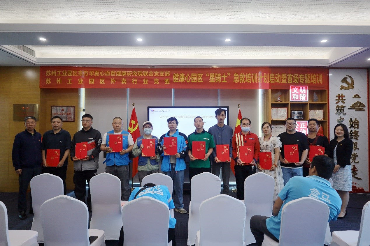 5月30日-5月31日下午,“星騎士”急救培訓(xùn)計(jì)劃啟動(dòng)暨首場(chǎng)專題培訓(xùn)會(huì)正式啟動(dòng),蘇州工業(yè)園區(qū)組織部組織處處長、蘇州工業(yè)園區(qū)東方華夏心血管健康研究院聯(lián)合黨支部書記、蘇州工業(yè)園區(qū)民企黨委委員、蘇州工業(yè)園區(qū)外賣配送行業(yè)黨委書記等出席活動(dòng),20名美團(tuán)、餓了么、盒馬鮮生等“星騎士”學(xué)員學(xué)習(xí)CPR急救技能等相關(guān)知識(shí)。