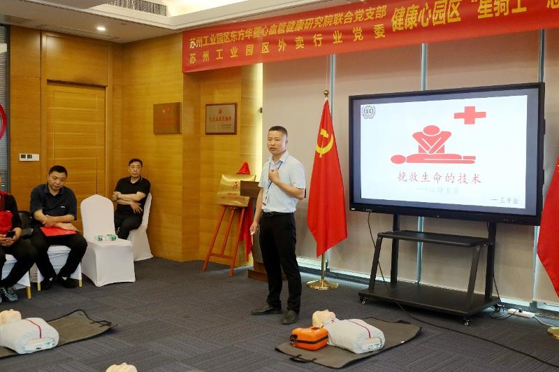 蘇州工業(yè)園區(qū)組織部組織處處長王梓源表示,外賣騎手是新業(yè)態(tài)新就業(yè)群體的典型代表,具有多在戶外行動(dòng)的特點(diǎn),不僅自身可能遭遇外傷,也是開展急救、幫助他人的重要力量。希望通過這次外賣行業(yè)黨委與心血管健康研究院聯(lián)合黨支部的共建活動(dòng),真正賦能新就業(yè)群體,希望各位學(xué)員認(rèn)真學(xué)習(xí),為自救和他救積累了寶貴經(jīng)驗(yàn),為建設(shè)健康心園區(qū)添磚加瓦。